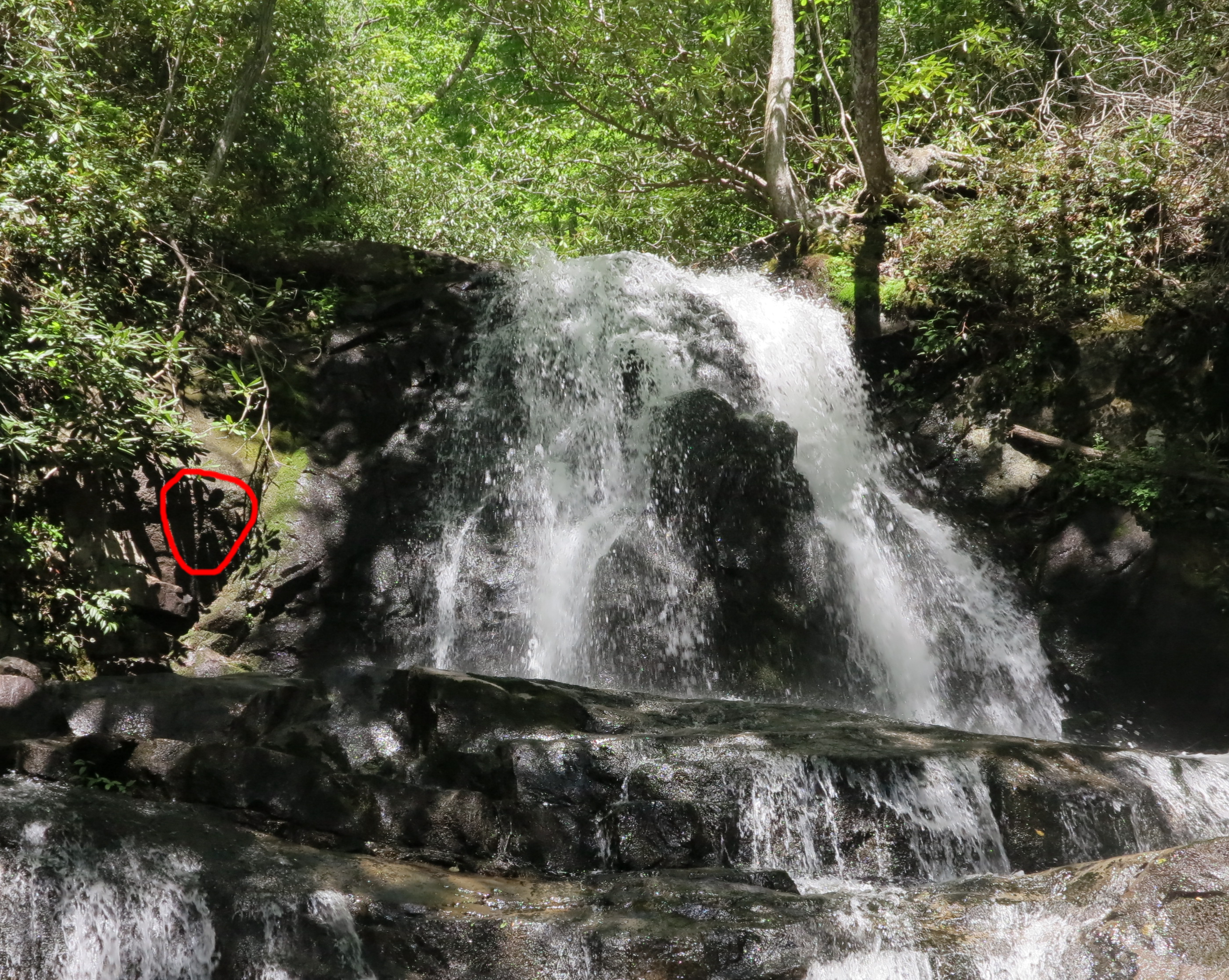 Slope of the mountain in the mixed forest, wet wall near Laurel Falls, vertical surface of the rock