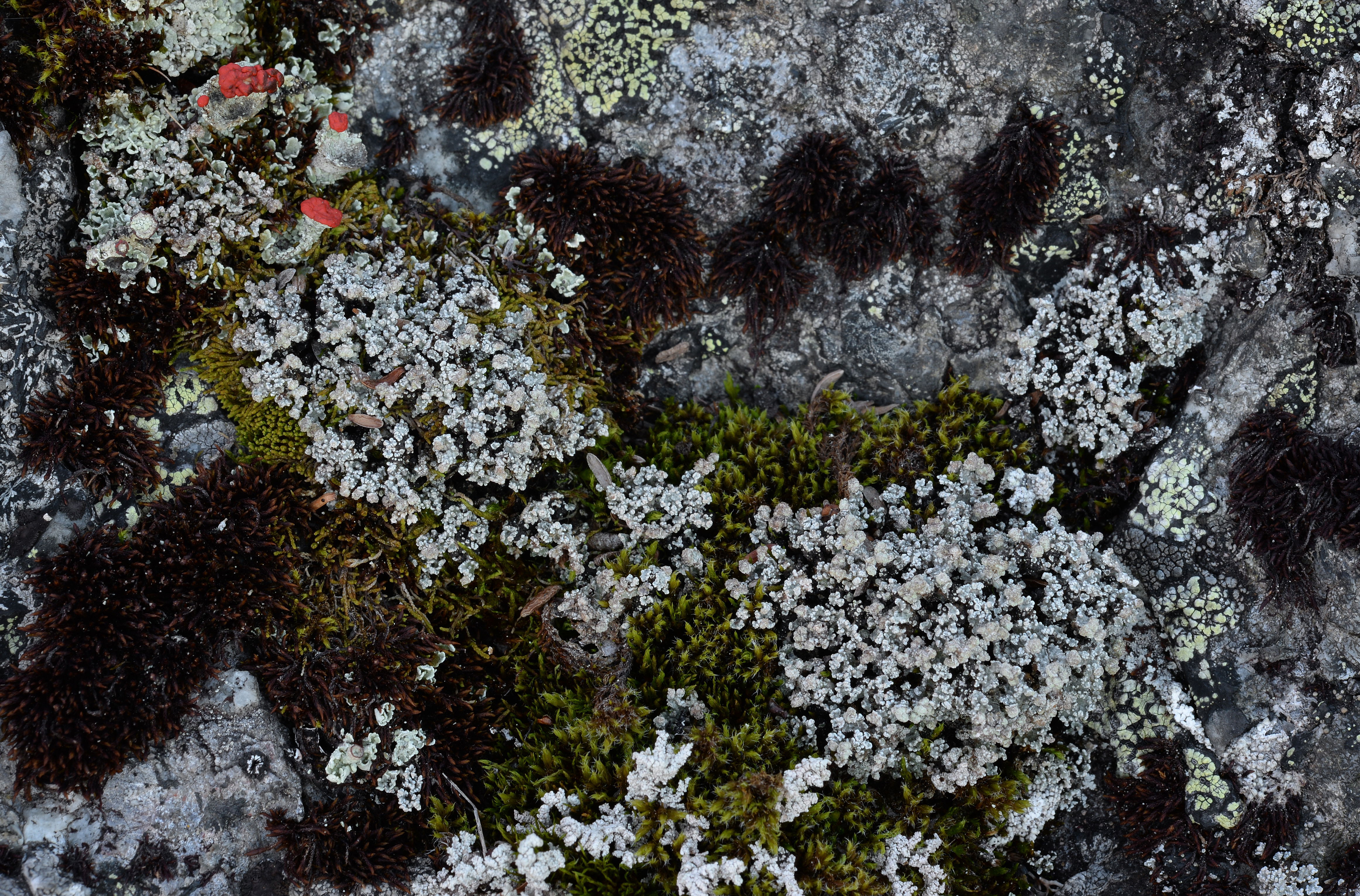 Massif Khibiny. Botanical circus. Tundra. Moss curtain on rock block (photo2015-21)