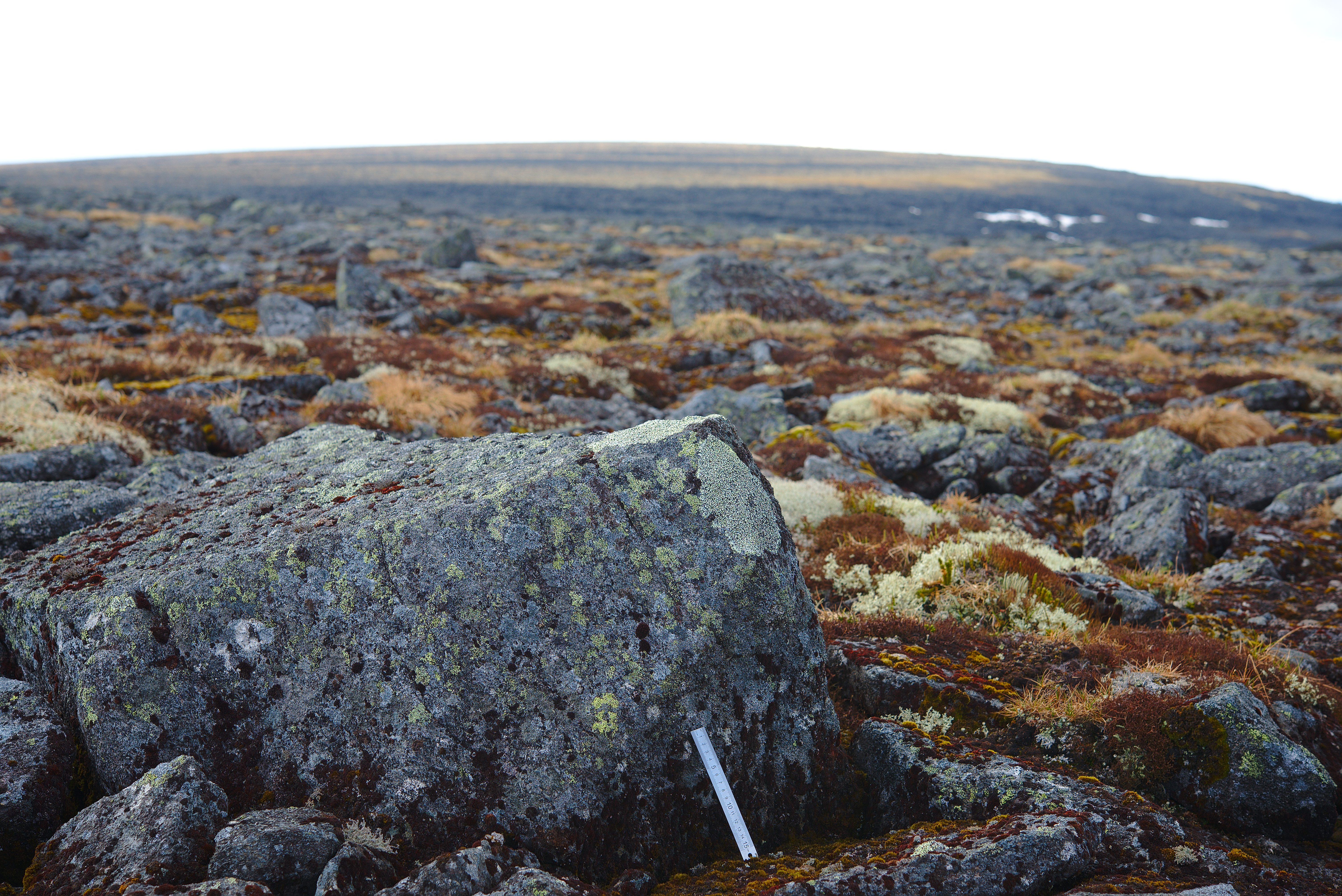 Massif Lovozerskie gory. Mountain top. Scree. Block of rock
